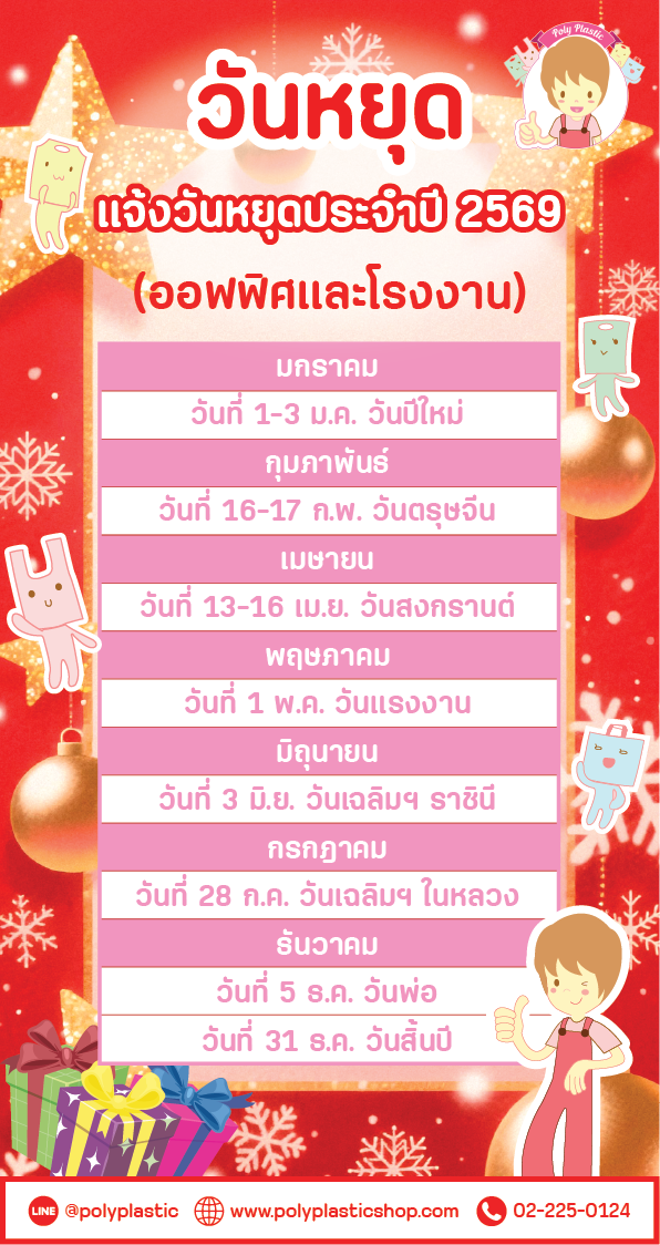 ปฏิทินแจ้งวันหยุดประจำปี 2569